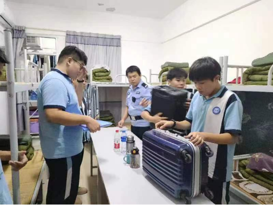 為切實(shí)增強(qiáng)師生安全意識(shí),進(jìn)一步加強(qiáng)校園安全常規(guī)管理工作,共建美好和諧平安校園,10月29晚,惠安縣黃塘公安派出所民警官一行蒞臨我校開展警校共建活動(dòng),共同構(gòu)筑堅(jiān)實(shí)的校園安全防線,許碧奎副校長(zhǎng)、全體教官及學(xué)工處工作人員陪同。