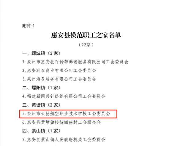 我校工會被惠安縣總工會評為“優(yōu)秀職工之家”