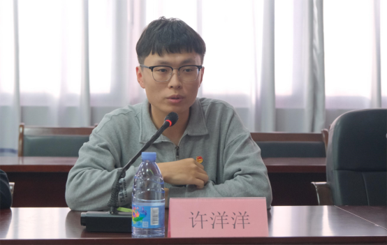 由團(tuán)支部副書(shū)記王金陽(yáng)匯報(bào)本支部開(kāi)展團(tuán)員和青年主題教育情況,并結(jié)合團(tuán)支部工作和個(gè)人實(shí)際交流匯報(bào)團(tuán)支部一年來(lái)在開(kāi)展的團(tuán)日活動(dòng)、青年大學(xué)習(xí)、收聽(tīng)收看黨的重要會(huì)議、習(xí)近平總書(shū)記發(fā)表的重要講話等學(xué)習(xí)情況,重點(diǎn)就本學(xué)期開(kāi)展的“團(tuán)員和青年”主題教育四個(gè)專題學(xué)習(xí)和組織生活會(huì)準(zhǔn)備情況進(jìn)行匯報(bào)。