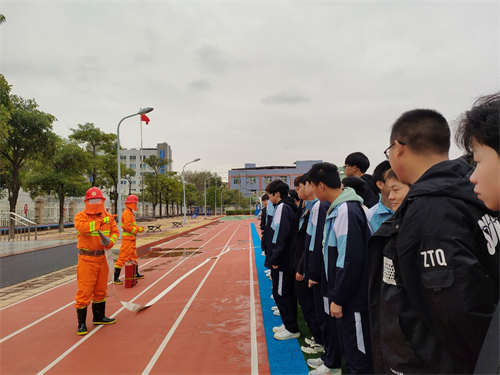 在師生安全撤離至操場(chǎng)后,我校微站人員進(jìn)行了消防安全應(yīng)急知識(shí)培訓(xùn)和滅火演練。為了讓大家有效、正確地使用器材,現(xiàn)場(chǎng)示范了滅火器的使用方法。