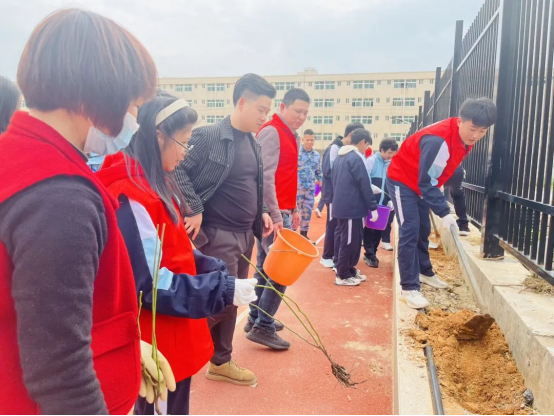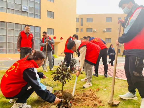 黨建引領(lǐng)志愿“紅”,植樹添“綠”筑未來。一鍬土,種下的既是樹苗,也是生態(tài)文明的希望。一桶水,澆灌的既是土壤,也是美麗校園的夢(mèng)想。此次“黨建帶團(tuán)建”植樹節(jié)主題活動(dòng)的開展,黨團(tuán)員、師生用實(shí)際行動(dòng)樹立植綠、愛綠、護(hù)綠文明新風(fēng),不僅為美麗校園增添綠意,更在每個(gè)人的心中種下了共建美好家園的期許,體現(xiàn)了新時(shí)代黨團(tuán)工作的新特色。