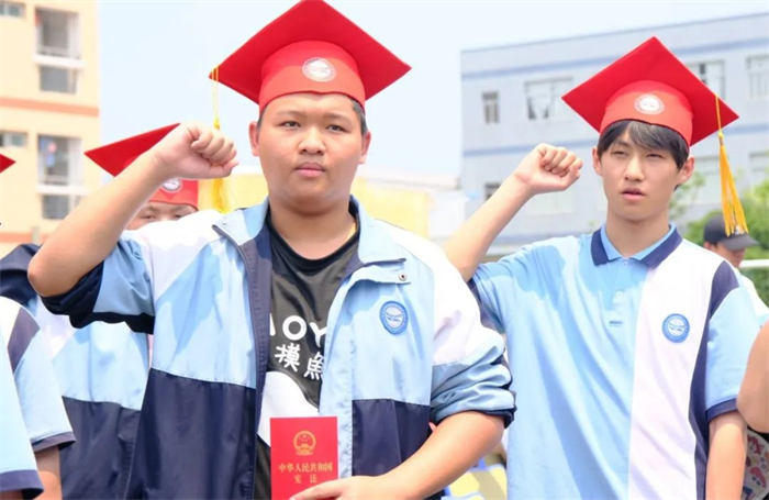 滾滾而來的年華,迎來永遠(yuǎn)熱烈的十八歲。站在十八歲的起點(diǎn),全體學(xué)生面向國旗、手持憲法、莊嚴(yán)宣誓。誓言鏗鏘有力,志向高遠(yuǎn)無窮。