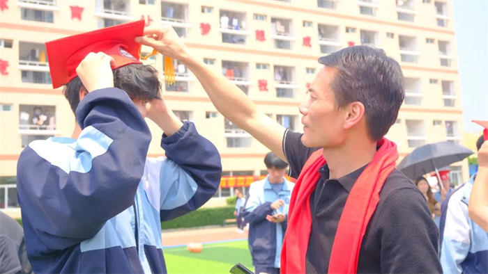君子始冠,必祝成功;加冠之禮,以示成人。隨著主持人鏗鏘的加冠詞,與會領(lǐng)導(dǎo)和家長為云揚(yáng)學(xué)子戴上成人帽、撥穗、正冠,贈(zèng)予他們一份最最神圣的禮物——《中華人民共和國憲法》,提醒云揚(yáng)學(xué)子從這一刻開始將身負(fù)責(zé)任,擔(dān)當(dāng)使命。