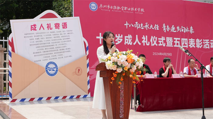 十八歲,是對懵懂幼稚的告別;十八歲,是與成熟穩(wěn)健的相約。成人禮,是少年們過往歲月的贊美詩,更是少年們未來征程的期望歌!至此,泉州市云揚(yáng)航空職業(yè)技術(shù)學(xué)校十八歲成人禮儀式暨五四表彰活動(dòng)在一聲聲深情祝福的陪伴下圓滿落幕!