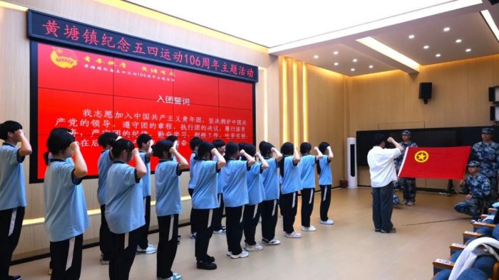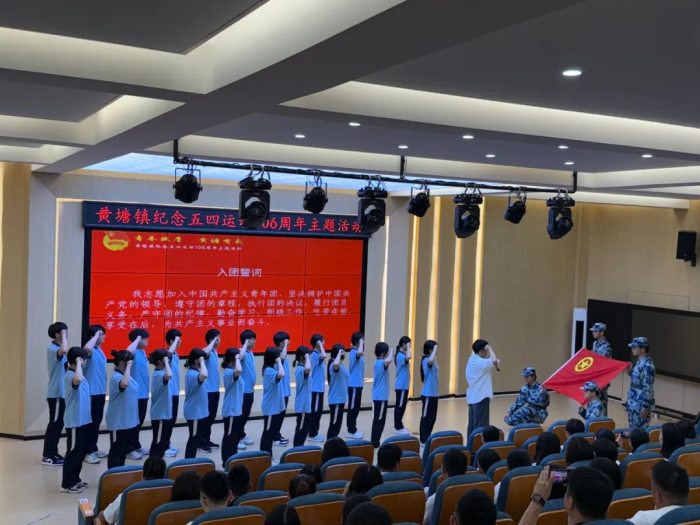 "我志愿加入中國(guó)共產(chǎn)主義青年團(tuán)..."20名團(tuán)員代表在團(tuán)委書(shū)記王金陽(yáng)老師帶領(lǐng)下,面向團(tuán)旗莊嚴(yán)宣誓。