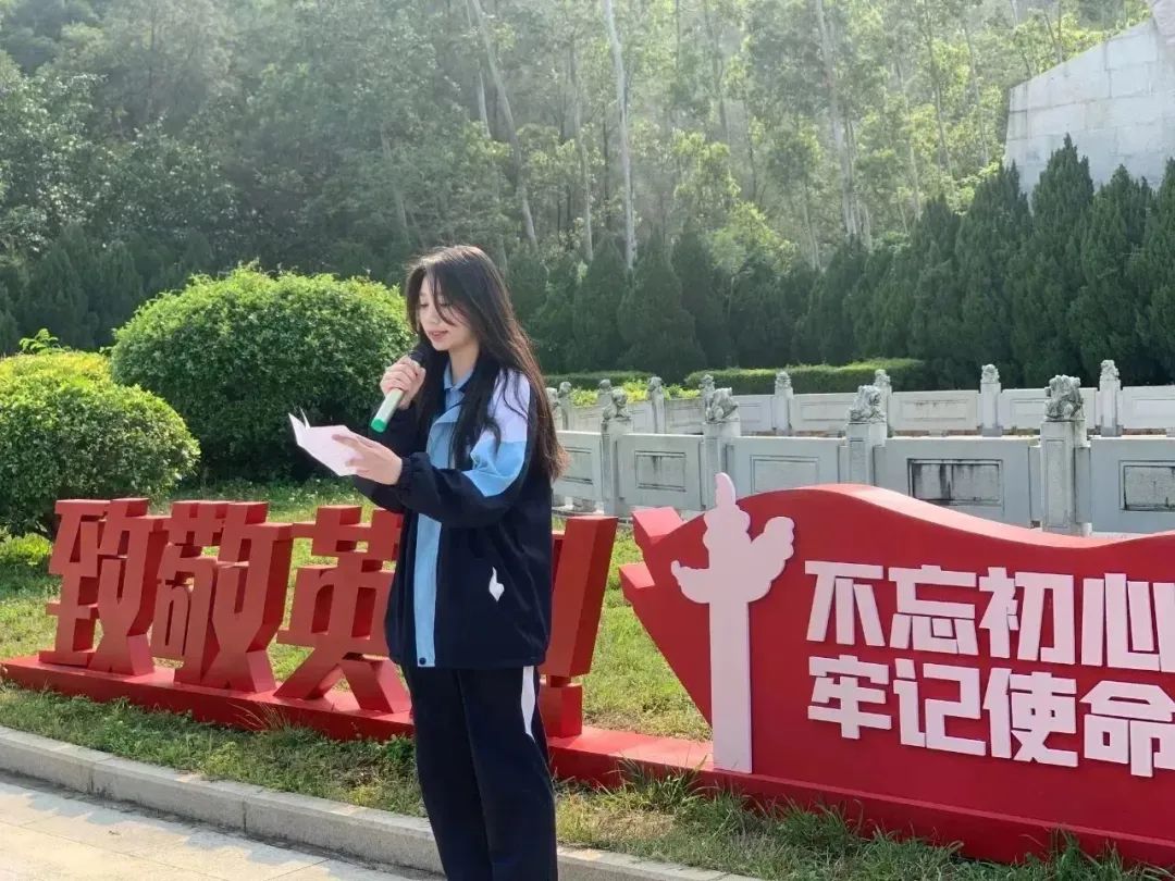 隨后,蔡伯恩老師介紹了惠安烈士陵園的革命歷史,讓同學(xué)們懂得今天的幸福生活是無數(shù)革命先輩拋頭顱灑熱血換來的。他希望同學(xué)們能牢記革命烈士的血淚事跡,發(fā)揚新時代奮斗精神,志存高遠、勤奮踏實!