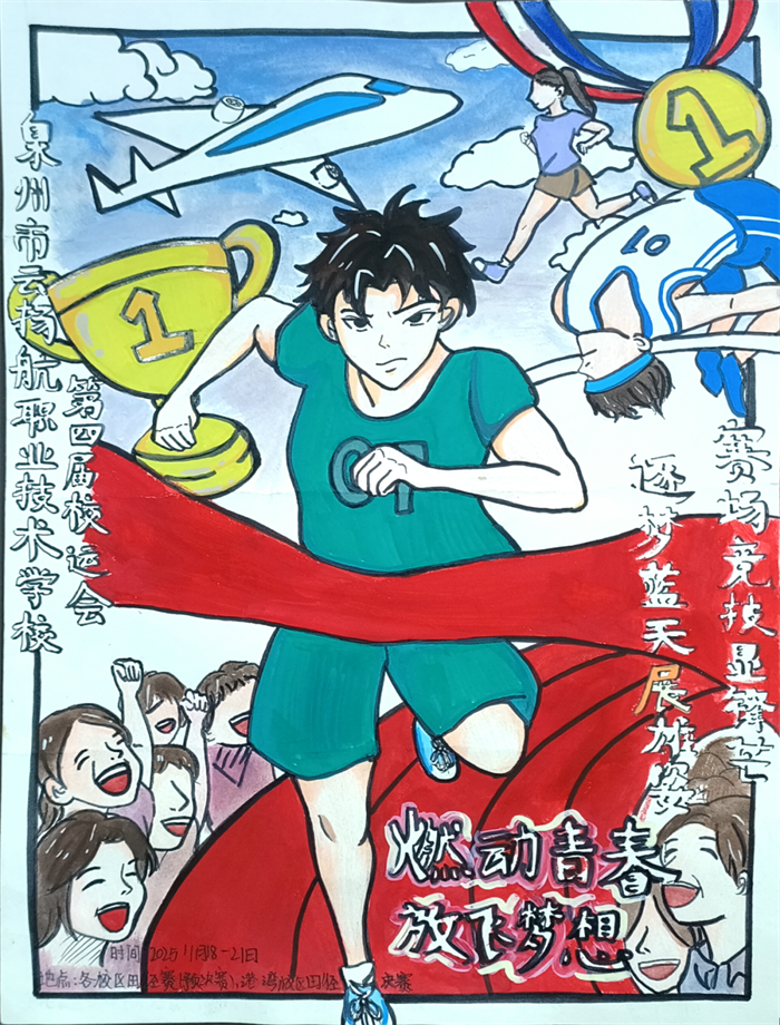 此次設(shè)計(jì)大賽,既是我校學(xué)子創(chuàng)意才華的集中展示,也是美術(shù)設(shè)計(jì)類專業(yè)教學(xué)成果的生動(dòng)呈現(xiàn)。未來,學(xué)校將繼續(xù)搭建多元展示平臺(tái),讓更多學(xué)子在青春的賽道上綻放光彩!讓我們共同期待校運(yùn)會(huì)精彩啟幕,也愿同學(xué)們始終以創(chuàng)意為帆、以熱愛為槳,逐夢(mèng)前行、不負(fù)韶華!