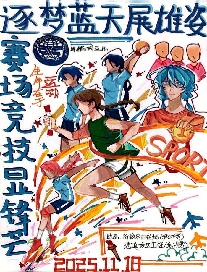 281 份海報(bào)勾勒賽場百態(tài),10 份精品提前點(diǎn)燃校運(yùn)熱情。強(qiáng)烈色彩對(duì)比的作品,直擊速度與激情的賽場內(nèi)核;柔和筆觸勾勒的畫面,傳遞夢(mèng)想啟航的溫情力量;細(xì)節(jié)滿滿的創(chuàng)作,則藏著對(duì)校運(yùn)會(huì)的無限期許。一張張生動(dòng)鮮活的海報(bào),不僅成為校園里的亮眼風(fēng)景線,更讓全校師生對(duì)校運(yùn)會(huì)的期待值拉滿!