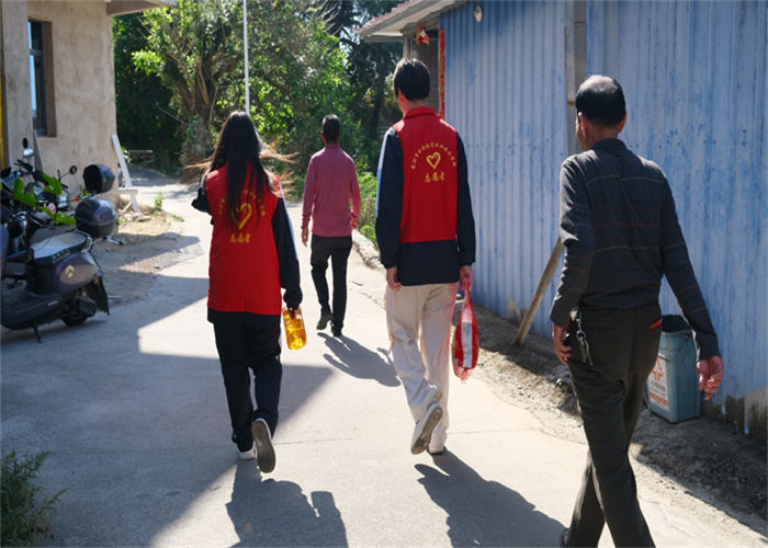 隨著活動(dòng)推進(jìn),慰問(wèn)隊(duì)伍開(kāi)啟了入戶關(guān)懷之旅。在前郭回族村黨總支和老協(xié)會(huì)代表的陪同下,我校師生代表手提慰問(wèn)品,逐一叩響高齡老人的家門(mén)。門(mén)內(nèi),是跨越代際的親切交談——志愿者們耐心聆聽(tīng)老人們講述歲月故事,認(rèn)真記錄他們的生活需求與健康困擾;門(mén)外,是深秋里最溫暖的牽掛。臨別時(shí)一聲聲“祝您安康”,讓重陽(yáng)的溫情在街巷間靜靜流淌。