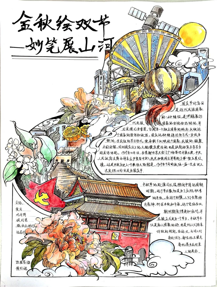 一張 A3 紙,是描繪雙節(jié)的天地;