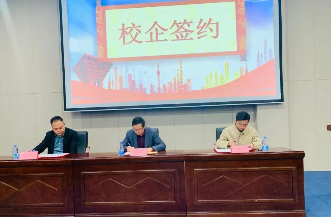 隨后,遲巖校長、劉建清總經(jīng)理和倪少澤總經(jīng)理作為三方代表現(xiàn)場簽署校企合作協(xié)議。