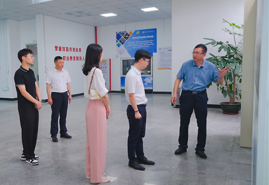 遲巖校長向團(tuán)縣委一行介紹了我校發(fā)展藍(lán)圖,指導(dǎo)組一行參觀了飛機(jī)維修、無人機(jī)應(yīng)用技術(shù)、機(jī)電一體化等實(shí)訓(xùn)教室,觀摩體驗(yàn)了飛機(jī)模擬器操作演練的技能學(xué)習(xí)過程。